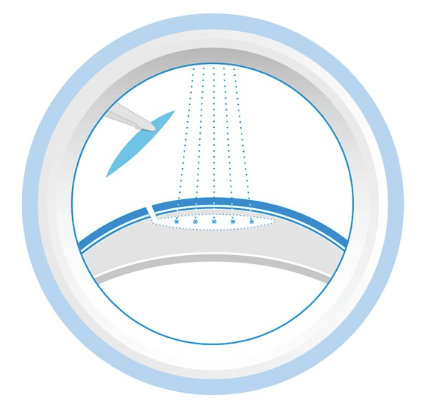 使用激光在完整的角膜内制作一小块角膜组织(微透镜)和一个小切口。